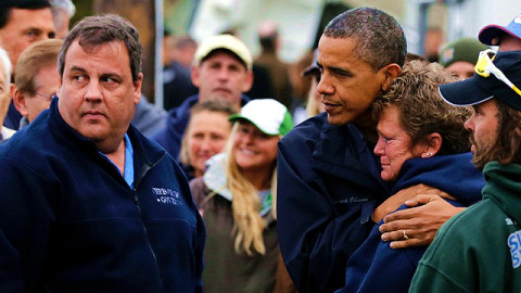 by Hurricane Sandy and comfort survivors. (Reuters photo by Larry Downing)