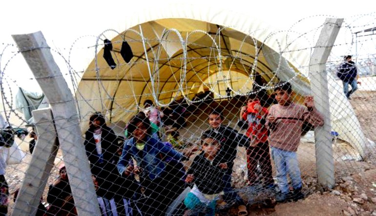 Syrian children behind a barbed wire fence at the Ceylanpinar refugee camp in the Sanliurfa province of Turkey. (Photo by Reuters)